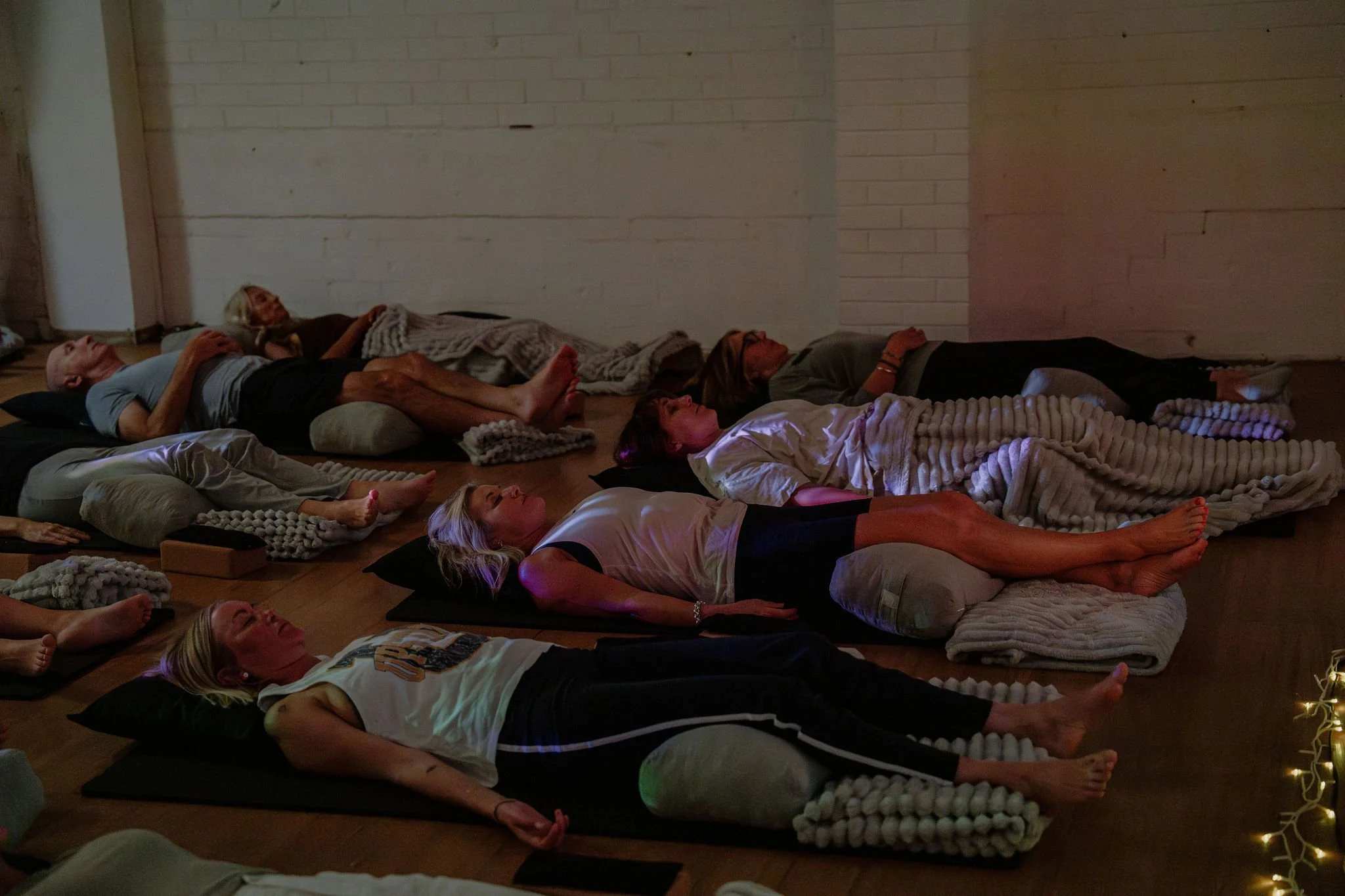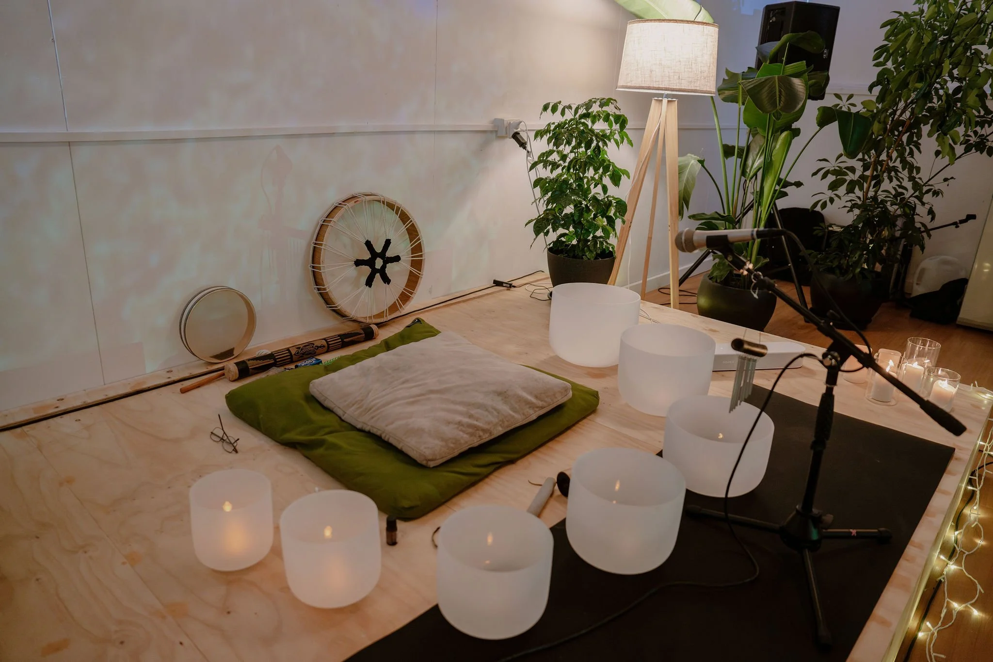 Everything is set up for you — mats, cushions, blankets… all ready to help you feel comfortable and supported. You might like to wear something warm and cosy, as your body naturally relaxes during the session.